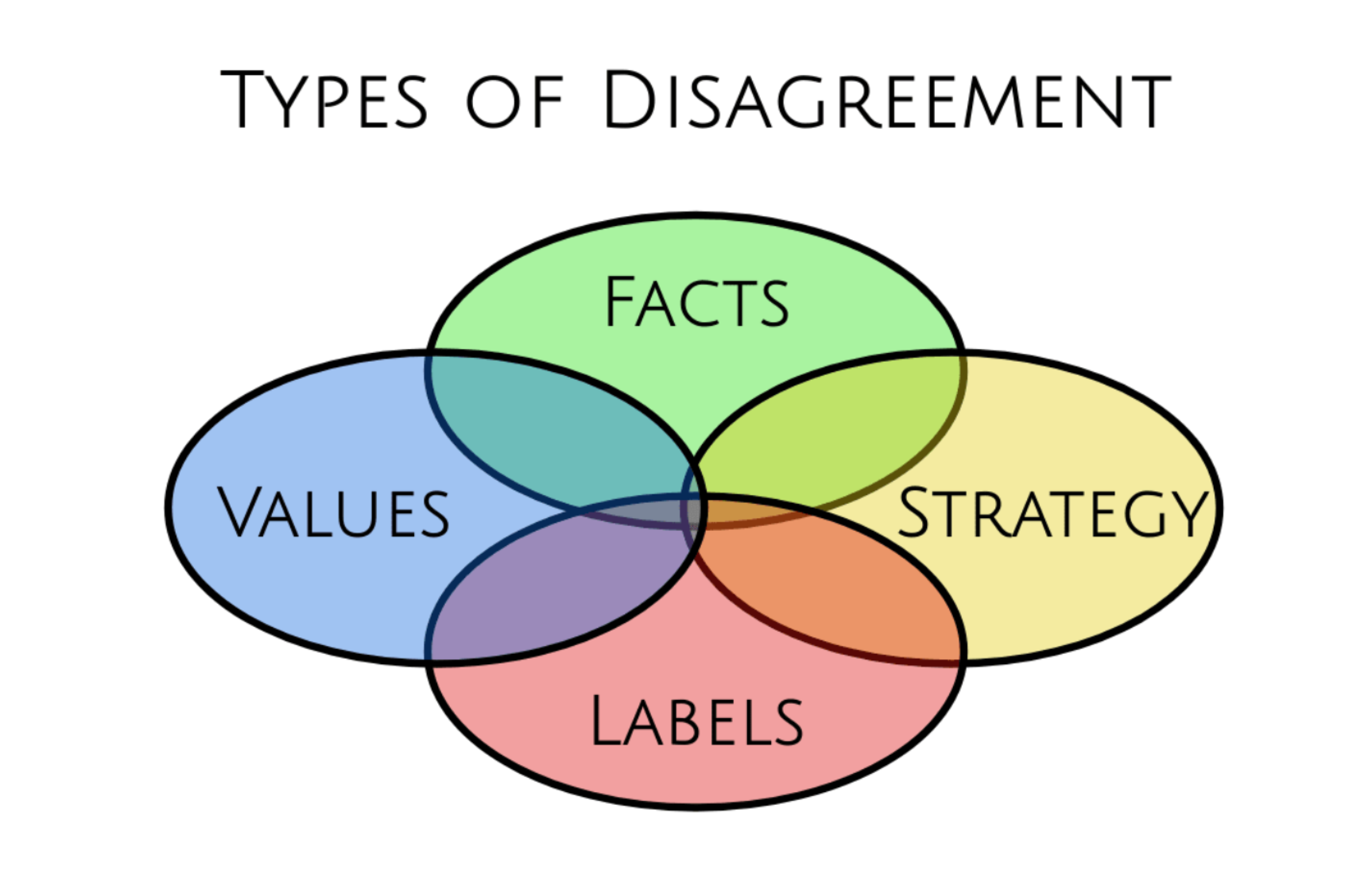 Article: Four Types of Disagreement by silentbob (?). An instructive post suggesting that disagreements can be about one of four things — facts, strategy, values, or labels — and that often, the friction in resolving the disagreement is that the parties don’t have the same view of which one it is. Adjacent to the oft-cited “Facts vs. Stories” approach to conflict, but with greater depth.